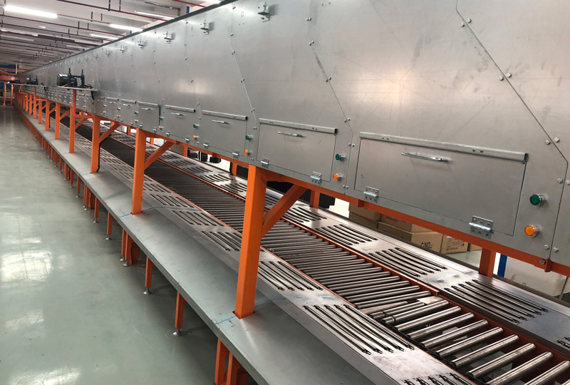 湖南狐轩服饰株洲物流中心智能自动化输送分拣项目,集成了箱输送系统、螺旋式提升机、交叉带分拣系统、主控系统和宝开自主研发的BIS信息系统,实现了货物的跨楼层搬运、整箱及拆零拣选出库、货品的包装、出库分拣、退货同款合并等功能的智能化。