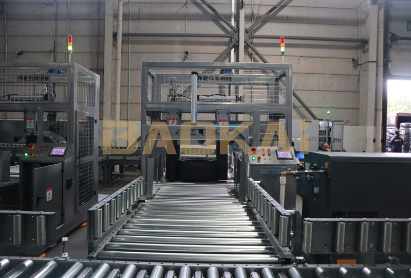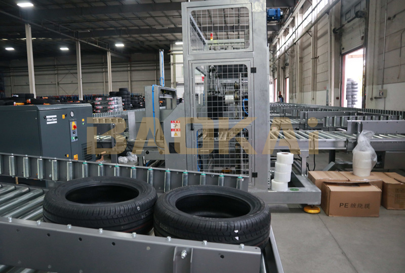 该项目主要集成了卧式环体打包机、输送线、直角分合流等硬件设备,配合宝开自主开发的BCS智能软件系统,从技术上实现了前置扫描到后置贴标的全程实时跟踪。现场八台打包机可满足480个轮胎/时的打包效率,采用的分合流装置在输送效率可以满足未来960个轮胎/时的分合输送效率。整体三期项目上线后,可实现至少 1440 个轮胎/时的扫码、打包、贴标效率。