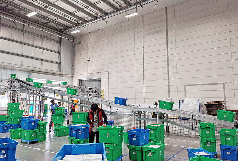 该项目集成了智能输送设备、智能分拣设备,宝开自主开发的BICS智能软件控制系统等,实现3个仓的跨库区联通,自动分拣,通过软件中控平台,实现波次的预处理分析与调度。