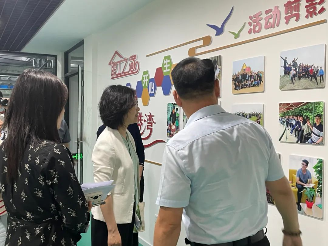 董事长邢志文、工会主席傅珊珊向各位领导详细介绍分布于各楼层的服务站点的功能设计,不仅仅满足于职工日常所需,同时也作为党群工作开展的宣传窗口和阵地,融合了宝开长期以来打造的和谐之家的企业文化。